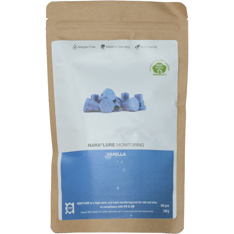 NARA is een gearomatiseerde kunststof, gifvrije lure en dient als lokmiddel voor muizen en ratten. Volledig allergeen vrij en hierdoor zelfs te gebruiken in de voedingsindustrie. Perfect in te zetten binnen Integrated Pest Management (IPM).