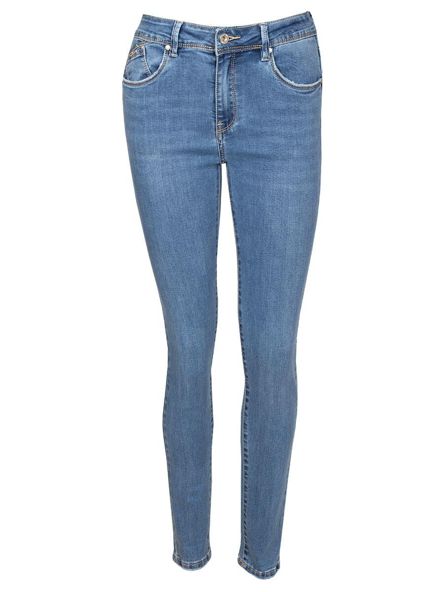 Details: slim fit, hoge taille, stretch, ritssluiting, stoere wassing, strassteentje op knoop en studs