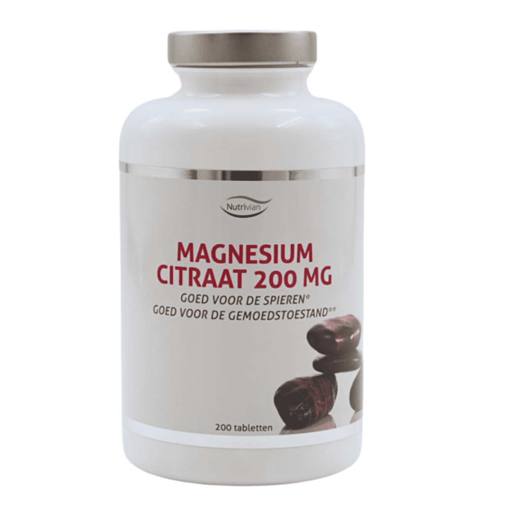 Magnesium Citraat van Nutrivian bevat per tablet 200 mg elementair magnesium in een zeer goed opneembare vorm.