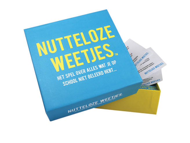 “Nutteloze Weetjes – Het spel over alles wat je op school niet geleerd hebt…-Welke beroemdheid van alle tijden geeft de meeste hits op bijvoorbeeld Google?-Kan je een tatoeage op je tong zetten?-Waarom…”