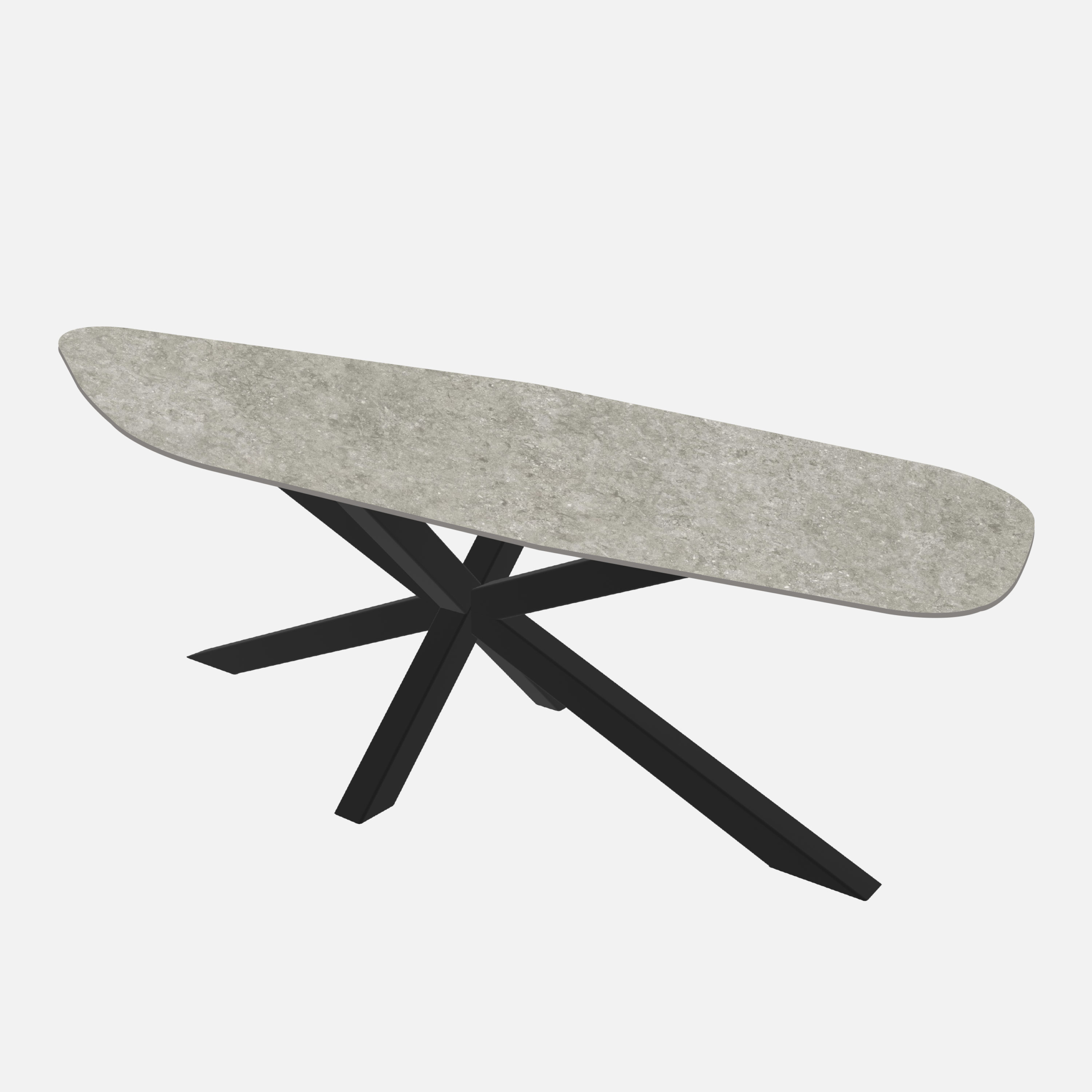 Bekijk product bij Keramischetafels.nl — bestel vandaag nog en ontvang de Stone Lia Organisch 280 x 120 Mat Nee, geen extra poedercoating 80 mm snel thuis.