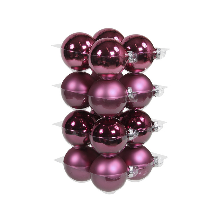 16x stuks glazen kerstballen cherry roze (heather) 8 cm mat/glans. Set met matte en glanzende kerstballen van glas. Onze kerstballen worden standaard geleverd met ophangdraadjes maar wij adviseren u om kerstbalhaakjes mee te bestellen (niet inbegrepen). Materiaal: glas. Formaat diameter: 8 cm.