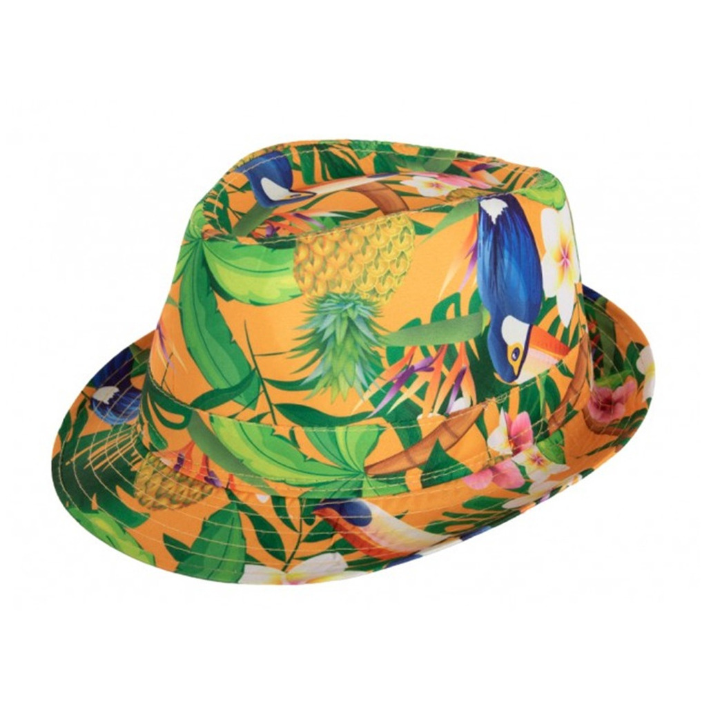 PartyXplosion Verkleed hoedje voor Tropical Hawaii party – bloemen print – volwassenen – Carnaval — PartyXplosion