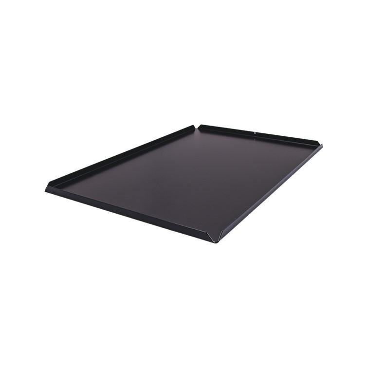 Universeel te gebruiken mat zwarte aluminium gebaksplaten met vier opstaande randen van 15mm. Door de open hoeken kan de plaat goed schoon worden gehouden. De gebaksplaten zijn verkrijgbaar in 5 standaard maten: – 400x600mm- 100x600mm- 400x500mm- 400x400mm- 400x300mm Custom maten zijn op aanvraag verkrijgbaar. Voor lichtere producten is er tevens een bonbonplaat verkrijgbaar met een opstaande rand van 10mm. Levertijd standaard maten 3-5 werkdagen Levertijd custom maten 4-5 weken