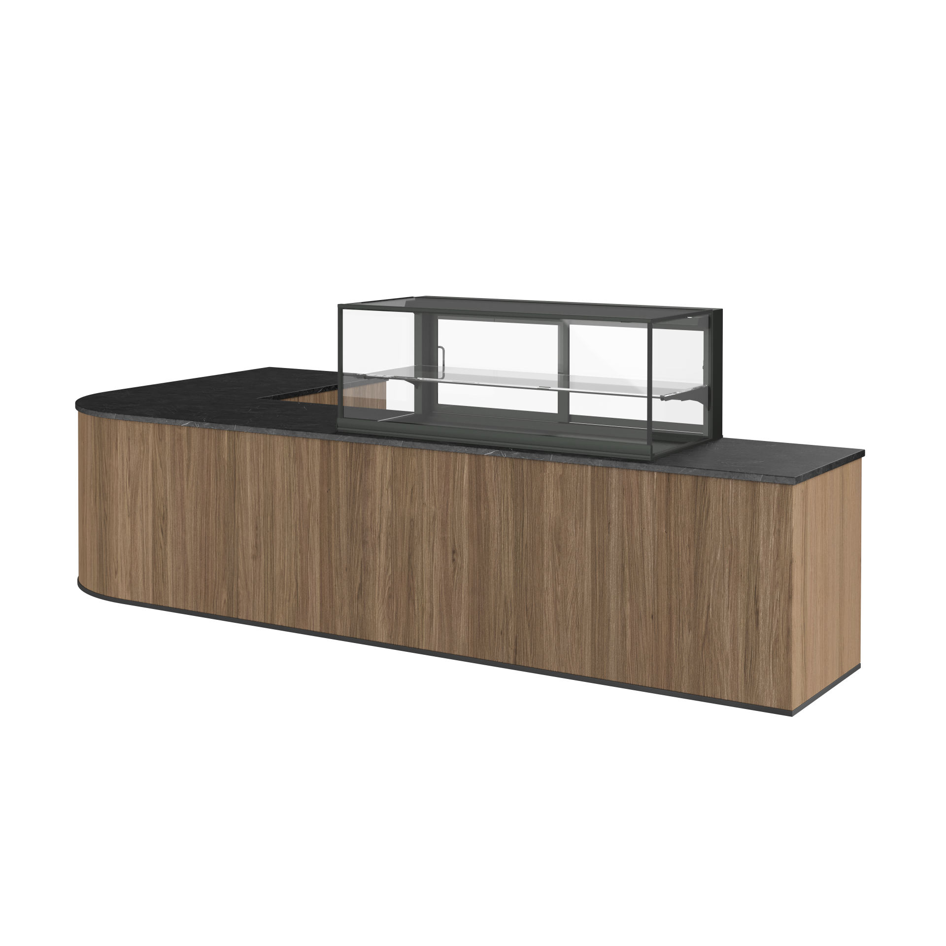Energiezuinige geforceerde koeling voor het koelen van patisserie en gebak. (ECO-PLUS-versie met lager energieverbruik). Aan de klantzijde heeft deze koeling een rechte glasconstructie van isolatieglas die naar buiten kan worden gedraaid voor eenvoudige reiniging. De schappen van veiligheidsglas zijn in hoogte verstelbaar en kunnen worden gekanteld voor een flexibele presentatie. Twee luchtsnelheden kunnen worden geselecteerd voor verschillende producten.De constructie, presentatievlak en binnenbak zijn volledig gemaakt van RVS. Het interieur van de binnenbak is afgewerkt met een verzonken afvoerfitting met schroefdraad en hygiënische hoeken die gemakkelijk schoon te maken zijn. De buitenkant is gemaakt van gegalvaniseerd plaatstaal.Om de binnenbak te kunnen reinigen kan het presentatievlak met luchtverdamper en ventilatoren omhoog geklapt worden. In de hoogste positie kan deze vergrendeld worden met gasdrukveren.Product specificatiesTemperatuur: < 5 °CVochtigheid: ca. 70% tot 85%Verlichting: Afgeschermde LED strip onder elke plankOntdooi- en tempratuurregeling: DigitaalBreedte (mm): 1400Diepte: 705Hoogte boven blad: 520Koelcapaciteit: 450Aansluiting: 230V/422WMaat:4 GNUitvoering: Stekkerklaar Product optiesMachine omkasting - Standaard opgenomenLed verlichting - Standaard opgenomenInstelbare Led verlichting*PoedercoatingSoftcloseCO2 Ready - Op aanvraagDecentrale koelinstallatie - Op aanvraag* Wordt geleverd met digitale display voor het aanpassen van de kleur van het licht. Keuze uit de volgende instellingen: Brood, patisserie, kaas, vlees en Vis.Bovenstaande afbeeldingen dienen ter indicatie, hieraan kunnen geen rechten worden ontleend.