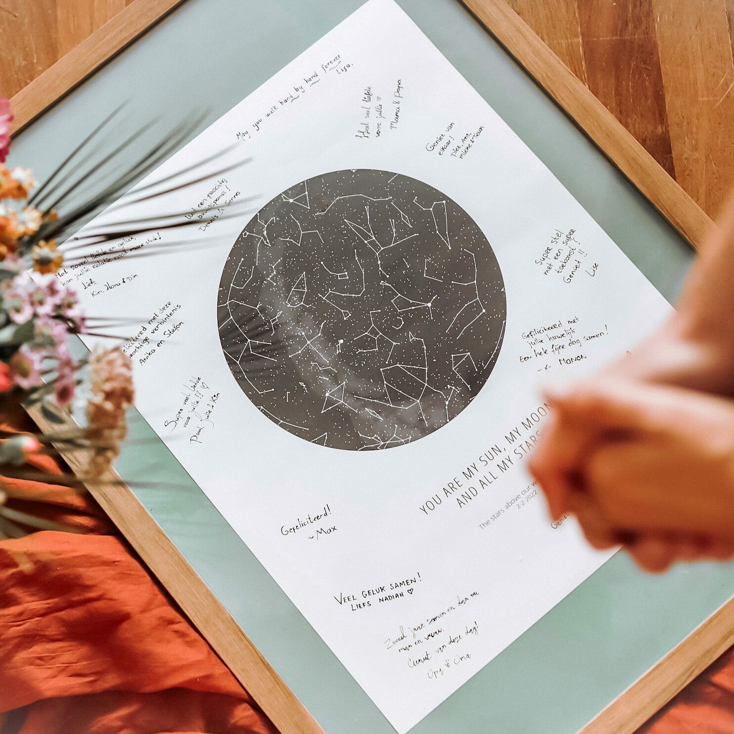 Gastenboek poster – Alternatief Gastenboek bruiloft – Sterrenposter met gelukswensen – 30x40cm – Place the Moment — Place the Moment