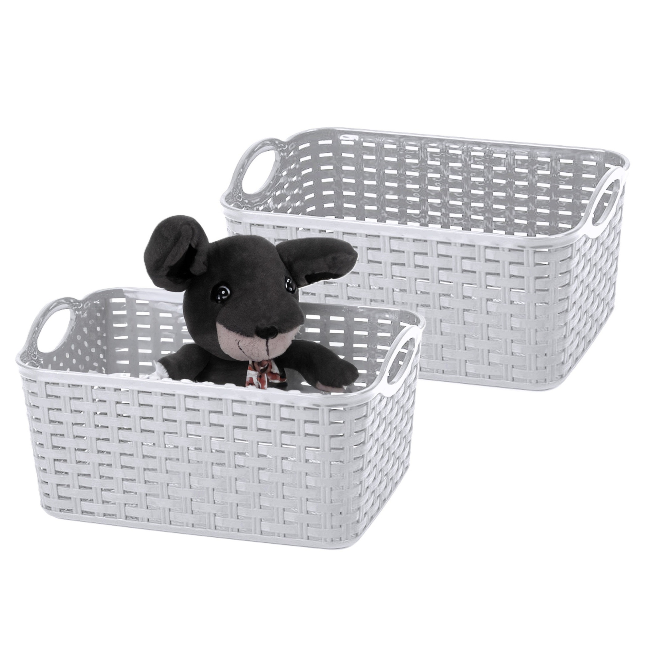 Opbergmand/kastmandje – 2x – 12 liter – zilver – gevlochten kunststof – 33 x 24 x 21 cm — PlasticForte