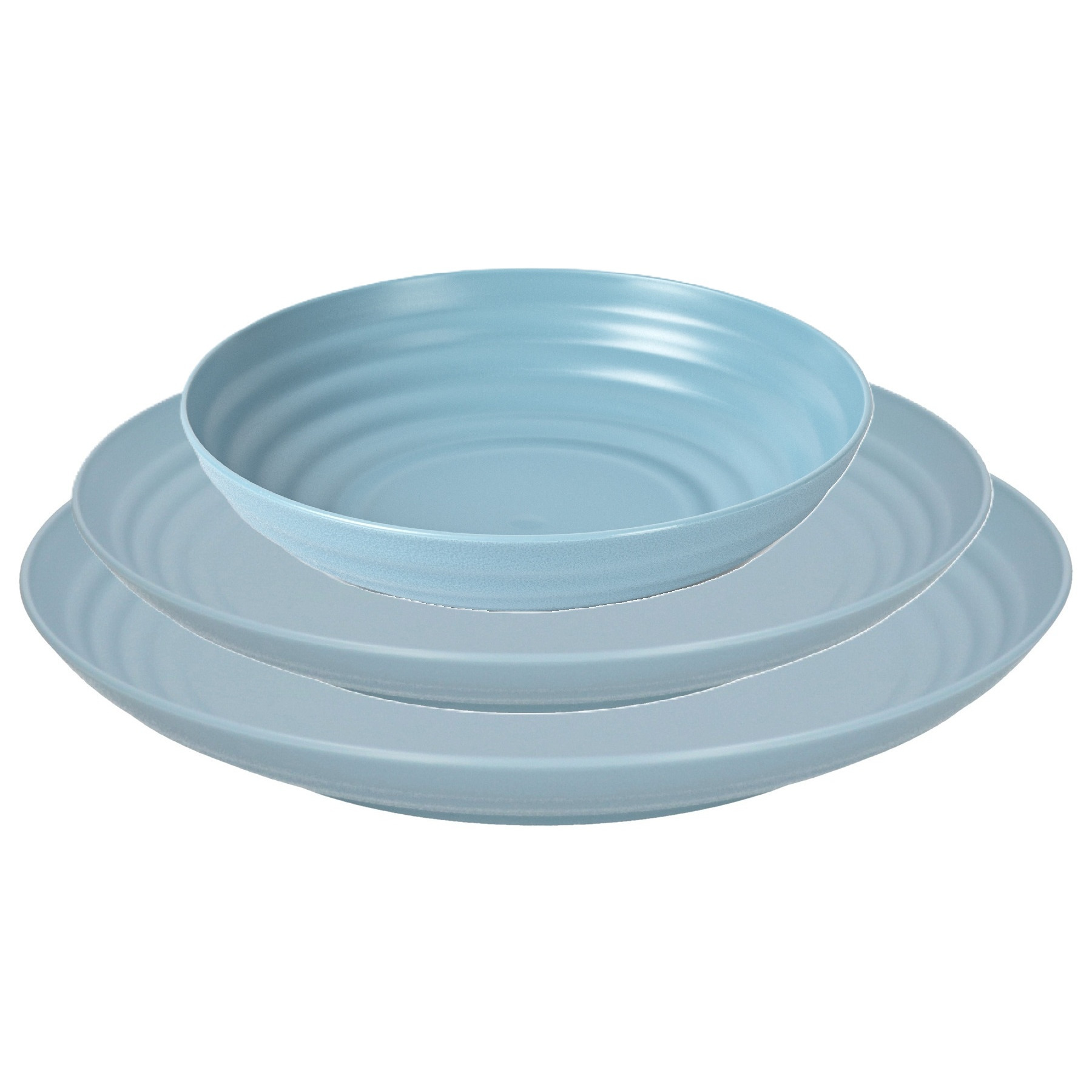Plasticforte camping borden set – blauw – kunststof – 3 soorten – 12x stuks – onbreekbaar servies — PlasticForte