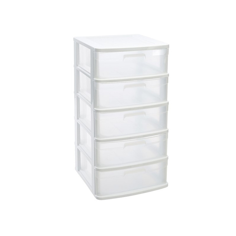 Bekijk product bij Shoppartners.nl — bestel vandaag nog en ontvang de Plasticforte Ladeblok 5x lades – wit/transparant – L40 x B39 x H81 cm – snel thuis.