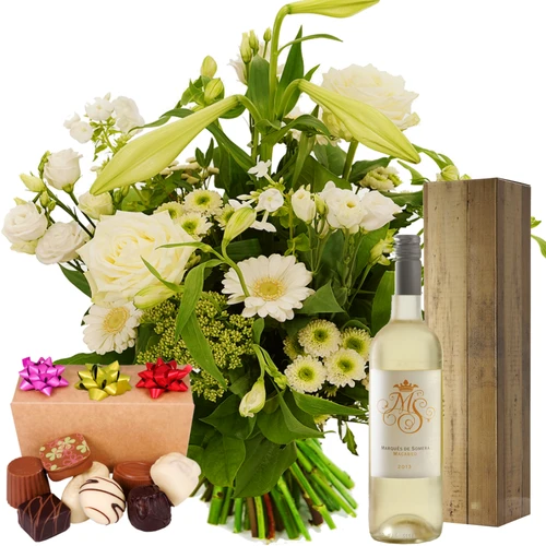 Prijs: €52.95 Witte verse bloemen een wit plukboeket voor Moederdag samen met heerlijke bonbons en een lekker flesje wijn laten bezorgen op Moederdag voor jouw moeder. Bekijk product → Bericht navigatie Sierlijk Fruitrek H 45cm x B 34cm – Fruitmanden [#25b896] Pasen plukboeket met glazen vaas – Pasen [#17fc38]