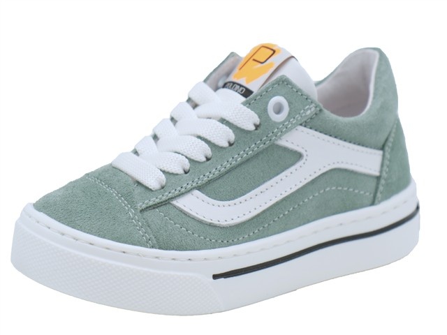 Poldino stoere en comfortabele jongens sneaker. Deze veterschoen van Poldino heeft als artikelnummer: 6723CG. De kleur is crosta sage oftewel licht groen in het suede leer met een stoere streep. De sneaker heeft naast de vetersluiting ook een ritssluiting aan de binnenzijde zodat je de schoenen gemakkelijk aan en uit kunt trekken. De voering is van leer met een leder uitneembaar voetbed.