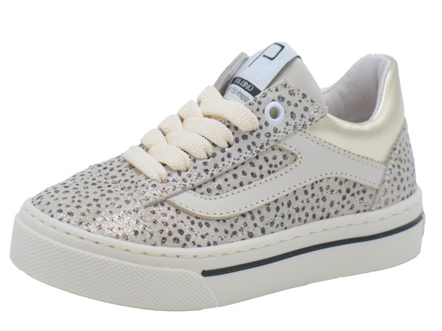 Poldino hippe en trendy meisjes sneaker. Deze veterschoen van Poldino heeft als artikelnummer: 6723IO. De kleur is indian lux oxford tan oftewel beige met stippen in het suede leer met een hippe streep. De sneaker heeft naast de vetersluiting ook een ritssluiting aan de binnenzijde zodat je de schoenen gemakkelijk aan en uit kunt trekken. De voering is van leer met een leder uitneembaar voetbed.