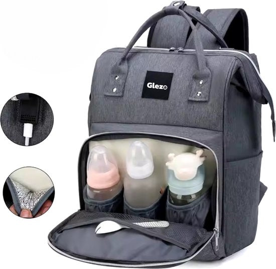 Deze Gleza verzorgingstas rugzak biedt alles wat je nodig hebt voor dagelijkse uitstapjes met je kleintje, verpakt in een stijlvol en praktisch design. Dankzij de stevige ritsen en hoogwaardige afwerking gaat deze tas lang mee. De verstelbare schouderbanden en kinderwagenbanden zorgen ervoor dat de tas comfortabel blijft, zelfs als hij volledig is gevuld.