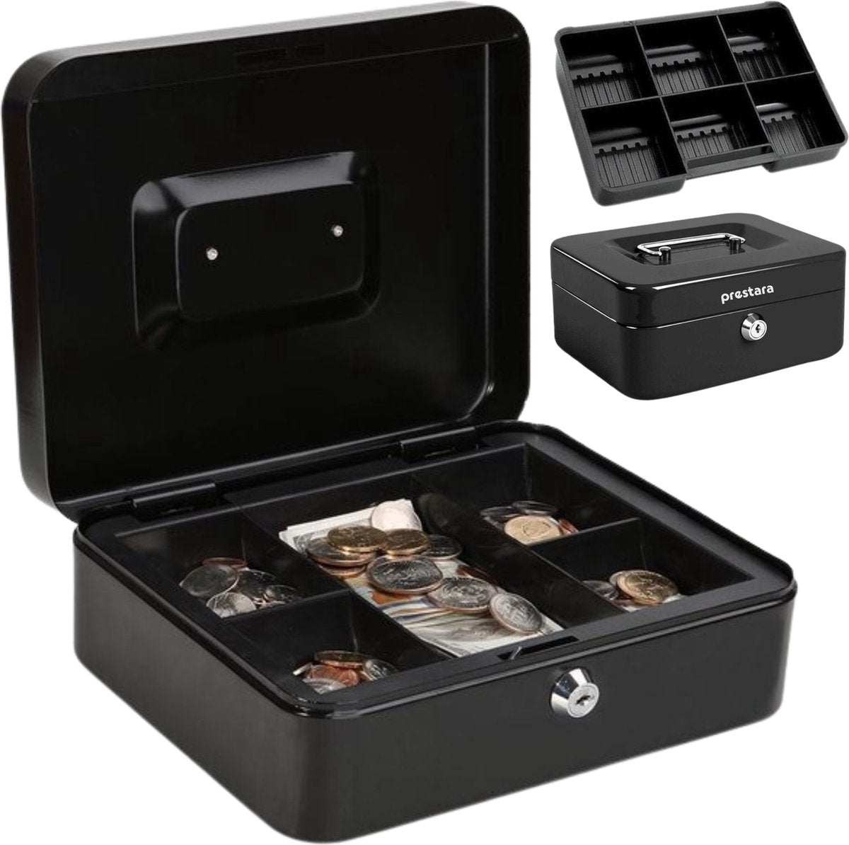 Bescherm je waardevolle spullen met dit stijlvolle en praktische geldkistje met sleutel. Bestel nu de Prestara Geldkist en profiteer van veiligheid en gemoedsrust!