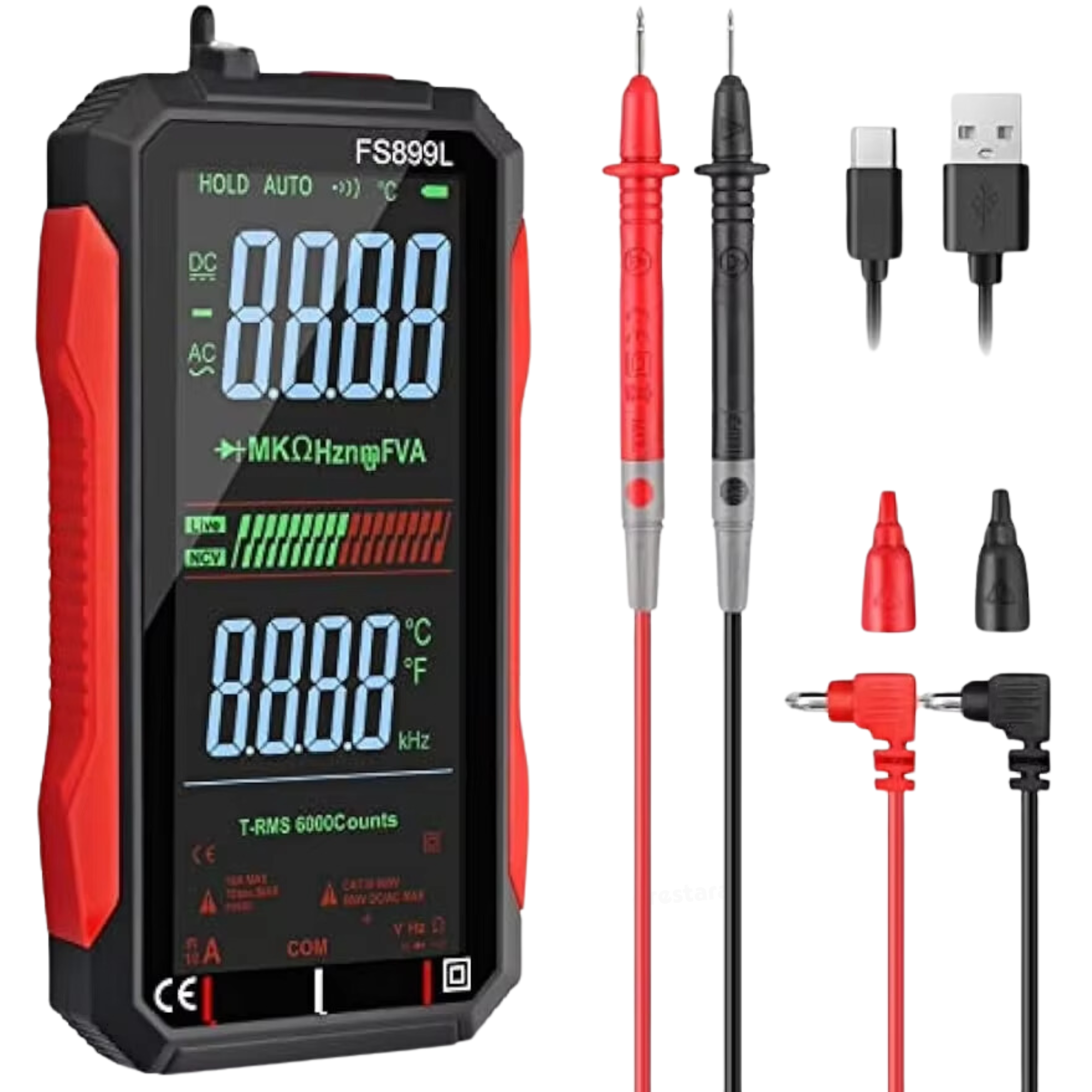 - Hoge Nauwkeurigheid: Met 6000 counts en True RMS voor de meest accurate metingen.