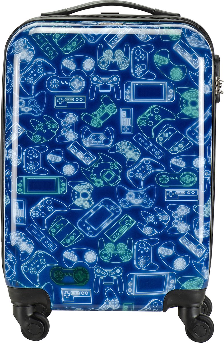 Stevige trolley voor de echte gamer. De handbagagekoffer is met 55cm hoogte geschikt voor de meeste vliegmaatschappijen. Met 4 zwenkwielen rol je met gemak door de douane op naar je vakantie. De koffer heeft een speelse print van gamecontrollers en is gemaakt van het stevige lichte ABS materiaal.