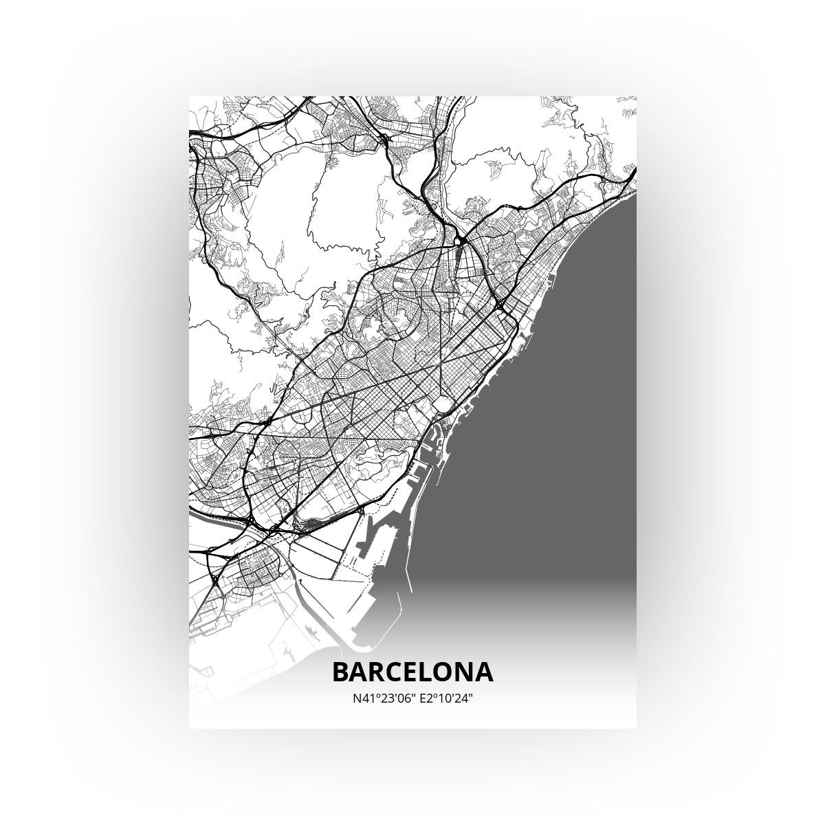 Bekijk product bij Printmijnstad.nl — bestel vandaag nog en ontvang de Poster Barcelona Plattegrond – A0 – Zwart Wit stijl snel thuis.