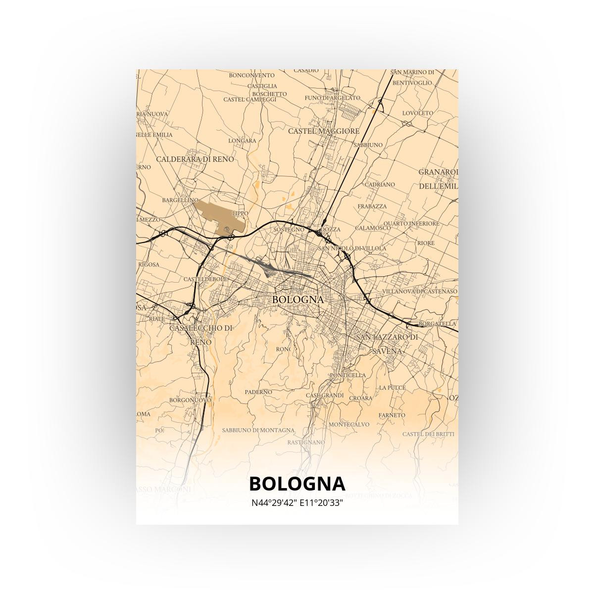 Print van de plattegrond van Bologna. Helemaal naar smaak aan te passen in onze unieke stijltool. Ontwerp snel je eigen poster op Printmijnstad.nl!