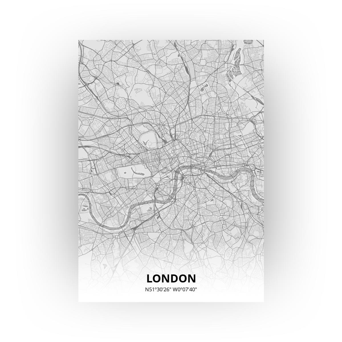 Print van de plattegrond van London. Helemaal naar smaak aan te passen in onze unieke stijltool. Ontwerp snel je eigen poster op Printmijnstad.nl!