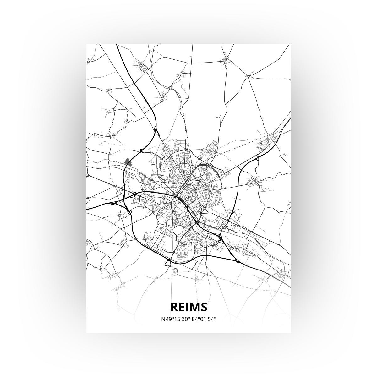 Print van de plattegrond van Reims. Helemaal naar smaak aan te passen in onze unieke stijltool. Ontwerp snel je eigen poster op Printmijnstad.nl!
