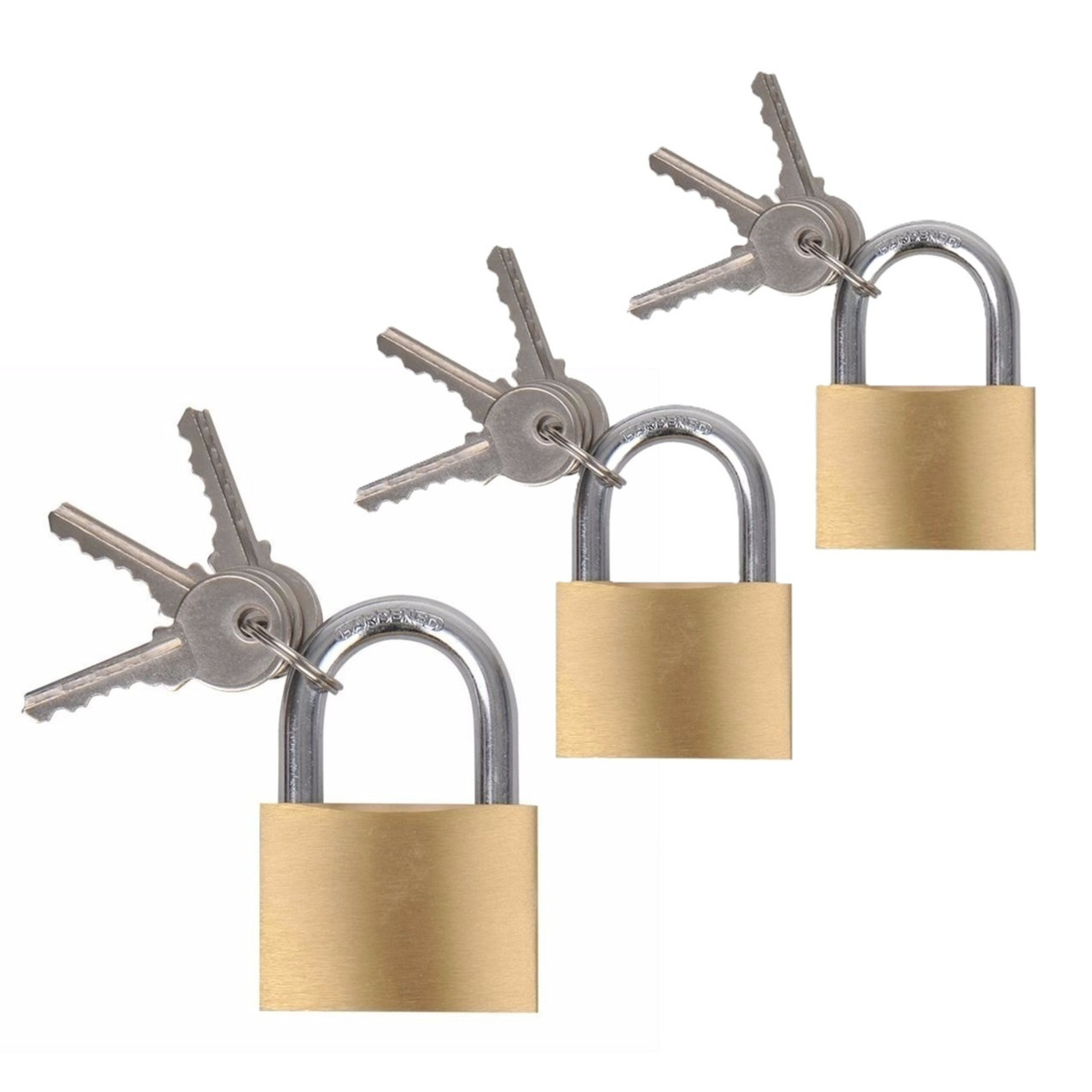 Hangsloten / koffersloten set – 3x stuks – maat 30/40/50 mm – messing – incl 3 sleutels per slot — ProPlus