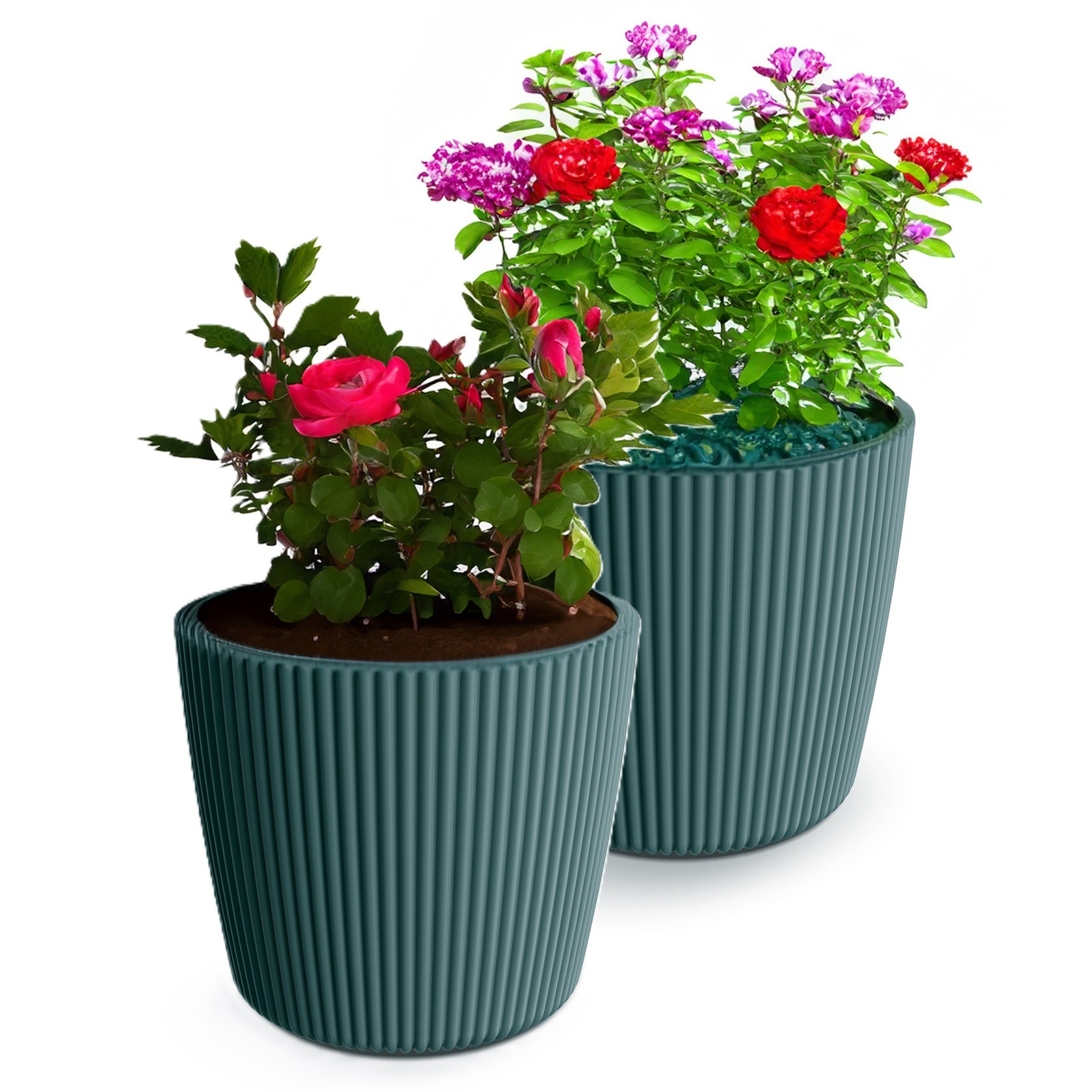 2x plantenpot/bloempot uit de Buckingham collectie is gemaakt van PP kunststof in de kleur zeeblauw met een strepen design patroon aan de buitenzijde. Deze prachtige ronde bloempot is echt een schitterende toevoeging aan uw tuin/terras/huis. De bloempot is voor buiten en binnen gebruik geschikt. De kunststof constructie van de plantenpot maakt dat de pot licht van gewicht is, waardoor hij makkelijk is te verplaatsten. Formaat: Diameter 19 cm x Hoogte 17 cm.
