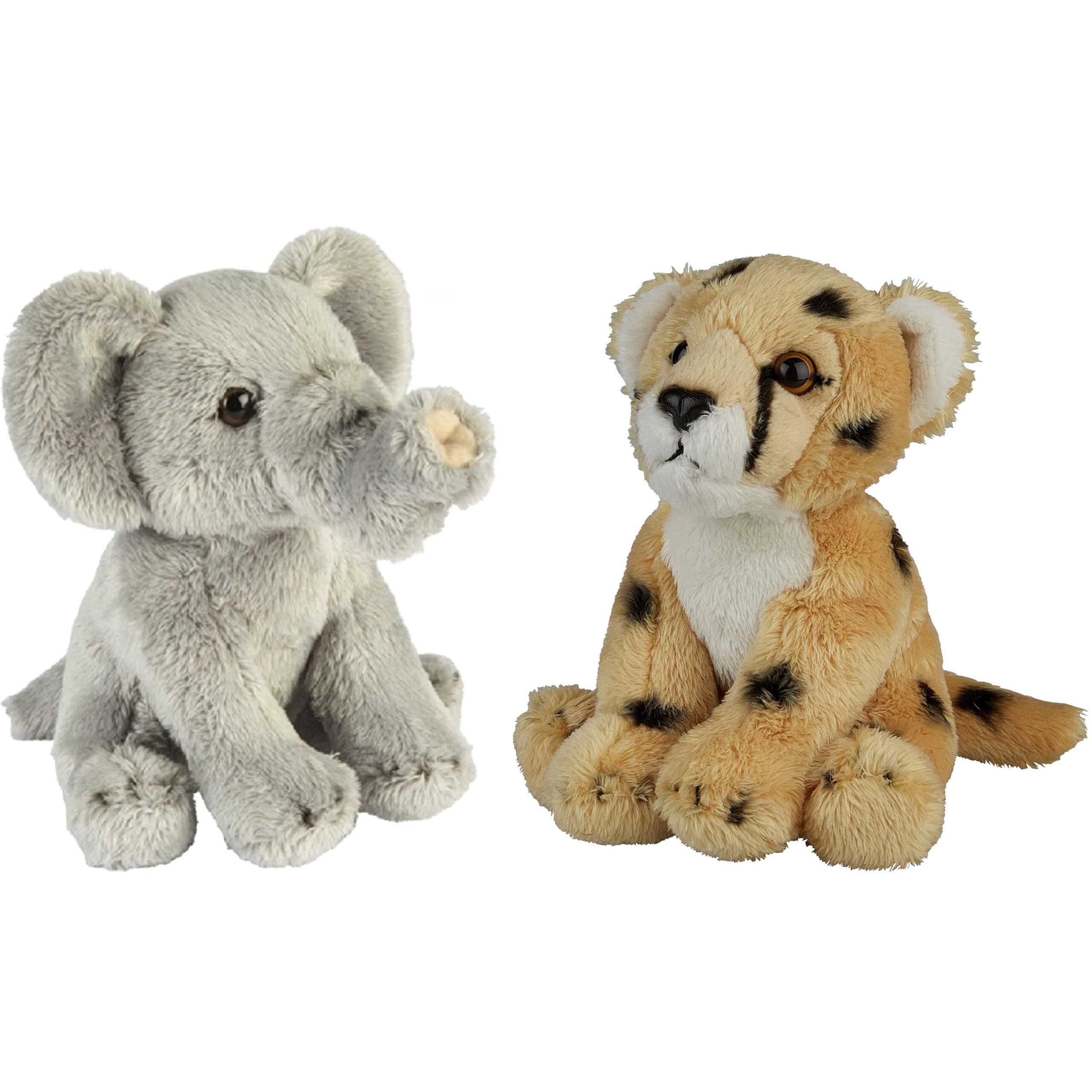 Safari dieren serie pluche knuffels 2x stuks – Olifant en Cheetah van 15 cm – — Ravensden
