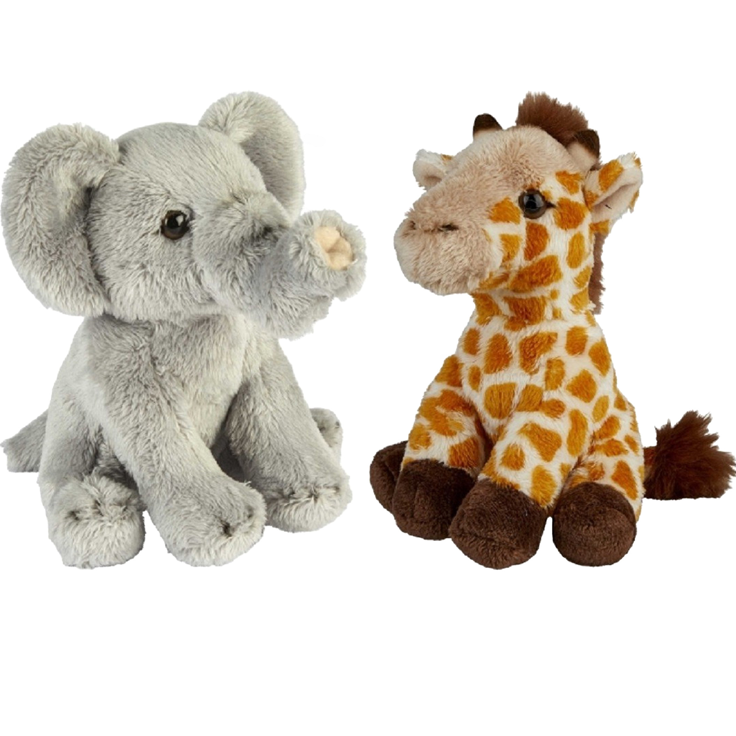 Safari dieren serie pluche knuffels 2x stuks – Olifant en Giraffe van 15 cm – — Ravensden