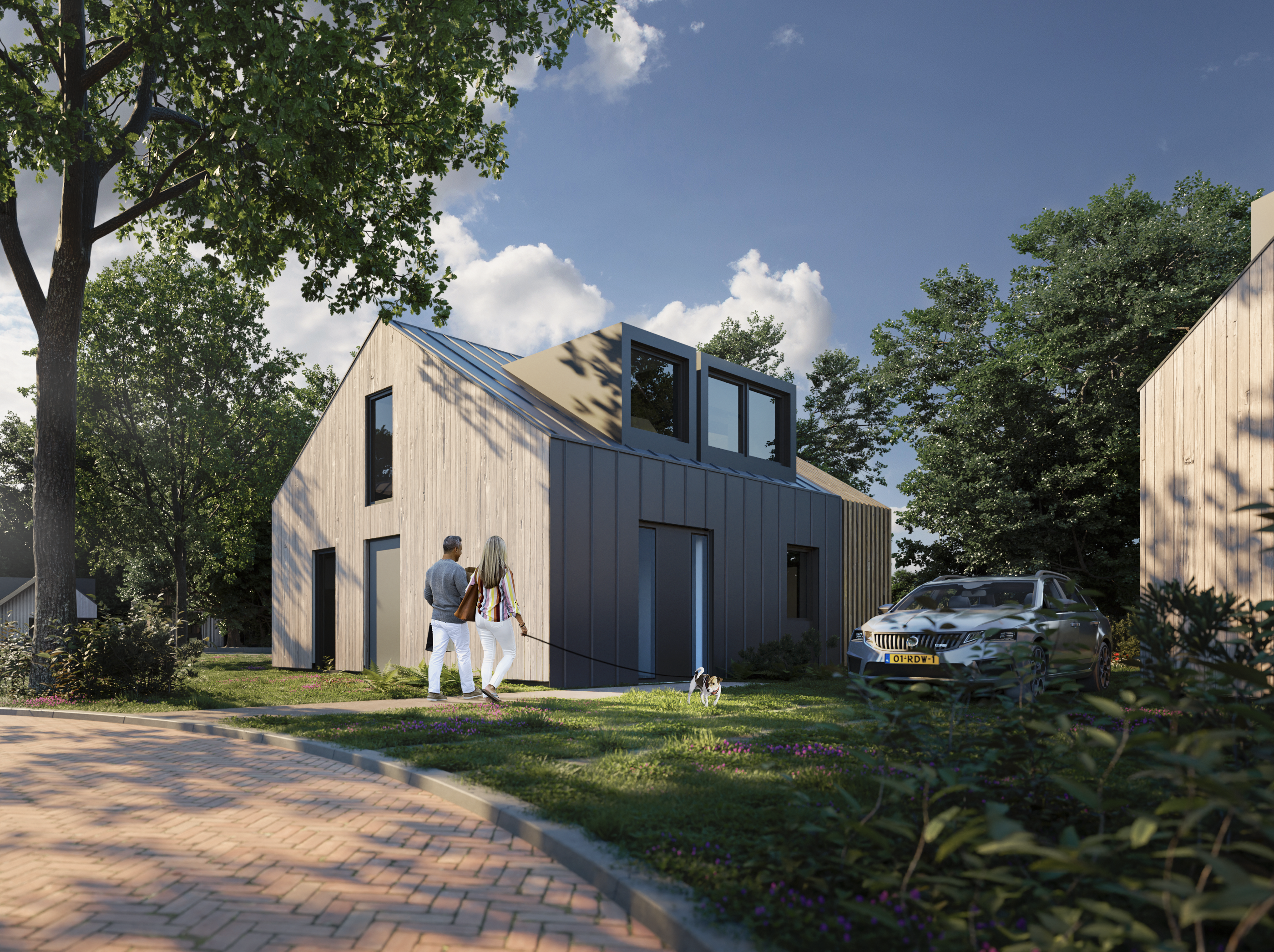 De Extra Luxe Wellness uitvoering beschikt tevens over een buitensauna in de tuin, met een overkapping, loungeset, barbecue en buitendouche. Bij de Extra Luxe Wellness woning is deze berging geïntegreerd in de overkapping. De afsluitbare berging biedt de mogelijkheid om uw fietsen te stallen en eveneens op te laden. Tevens beschikken alle woningen op Grotelsche Heide over eigen elektrische laadpalen, warmtepompen en zonnepanelen.