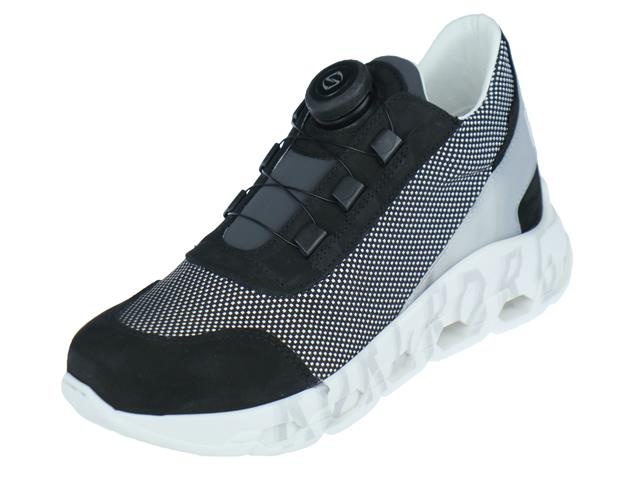 Red-Rag hippe en comfortabele jongens sneaker. Deze sneaker van Red-Rag heeft als artikelnummer: 13825-829. Dit is de ideale sneaker voor de jongens! Door de handige ski-sluiting kun je gemakkelijk zelf je schoenen strikken. Door het click & twist systeem kun je met 1 hand je schoenen sluiten en wordt schoenen aan doen super makkelijk. De schoenen zijn gemaakt van textiel en hebben een leer/neoprene binnen voering. De sportieve zool maakt deze sneaker extra stoer! De neus is van rubber zodat de schoenen tegen een stootje kunnen. Naast de leer/neoprenevoering hebben de schoenen ook een leder uitneembaar voetbed. De kleur is grijs met zwart gecombineerd.