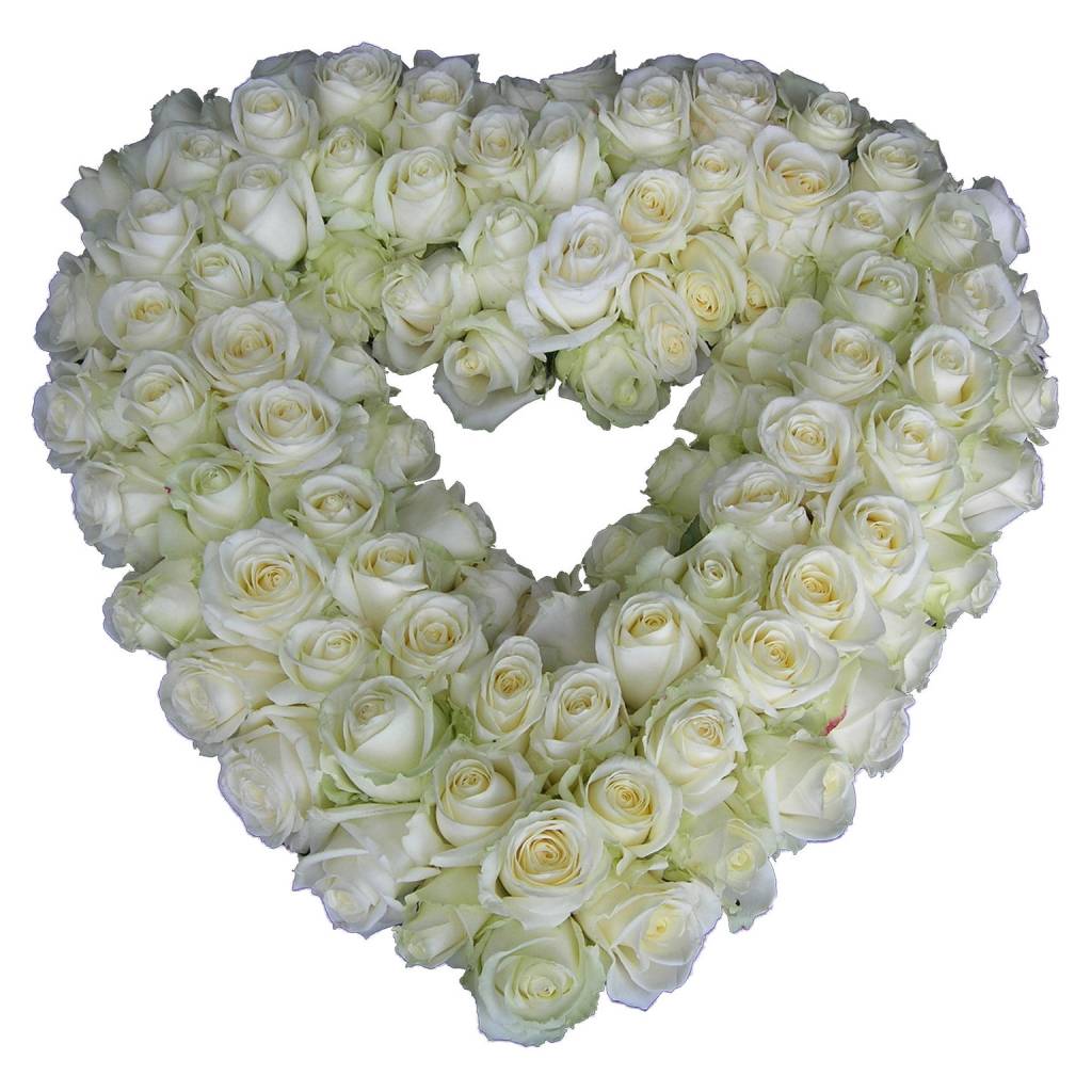 Open Rouwhart witte Rozen — Rouwboeket.nl