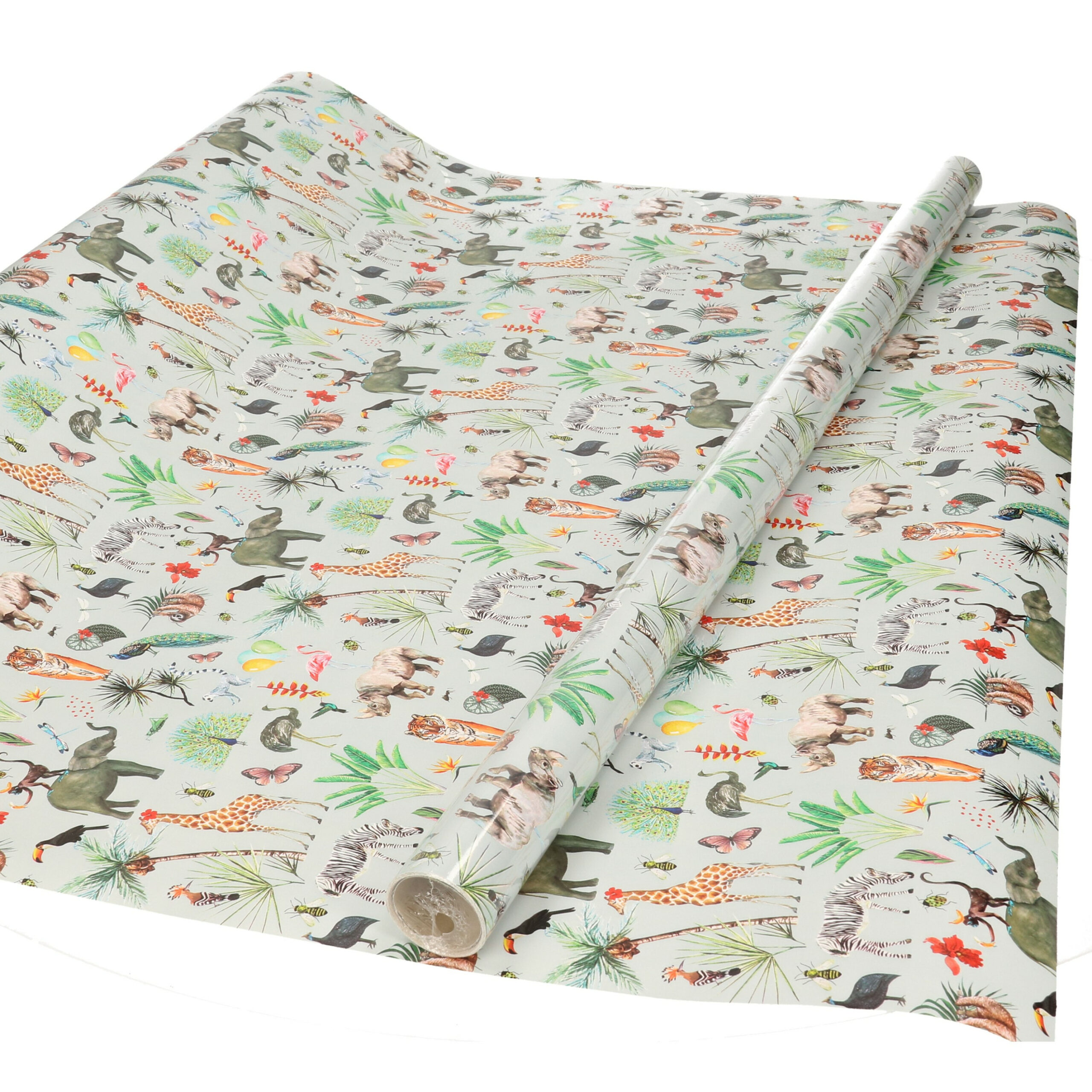 3x Inpakpapier/cadeaupapier jungle 300 x 70 cm taupe. Taupe kadopapier met kleurrijke prints van dieren uit de jungle. Cadeauverpakking papier op rol. Leuk cadeaupapier voor kinderen. Materiaal: papier, 80 grams kwaliteit. Formaat: 300 x 70 cm, op rol. Type: Jungle. U ontvangt 3 rollen.
