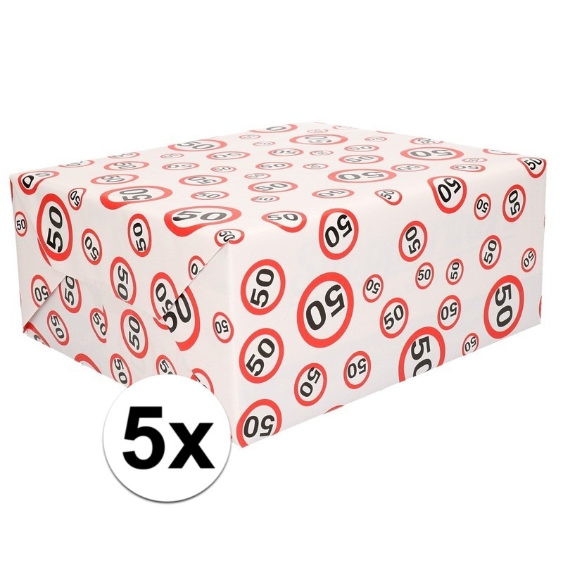 5x inpakpapier met 50 jaar verjaardag print in rood/witte verkeersborden. Een rol cadeaupapier met een 50 jarige verkeersborden print. Je ontvangt een rol cadeaupapier met een extra groot formaat van Meer info →