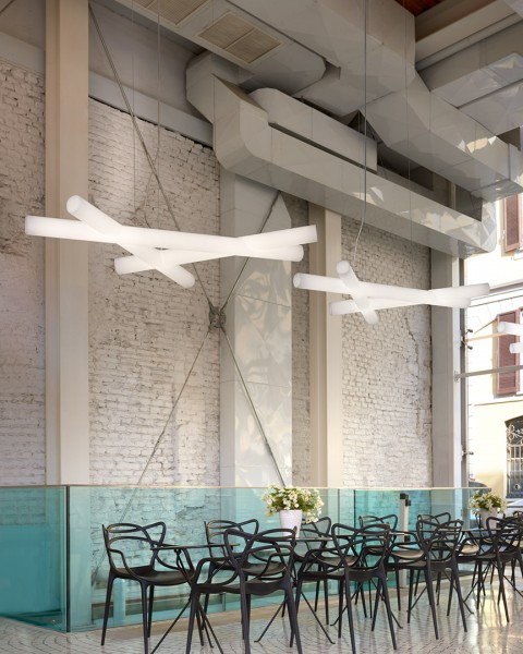 Mesh is een hanglamp die is geboren uit de creativiteit van de studie van de Italiaanse BBMDS.Het begint vanaf een eenheid, uniek en gemaakt in polyethyleen. Het kan worden gerepliceerd als een vertakking in de ruimte. .Elke eenheid bestaat uit drie gekruiste elementen waardoor, verschillende patronen naar persoonlijke smaak en grootte kan worden gevormd. Daardoor Mesh geschikt voor elke ruimte.