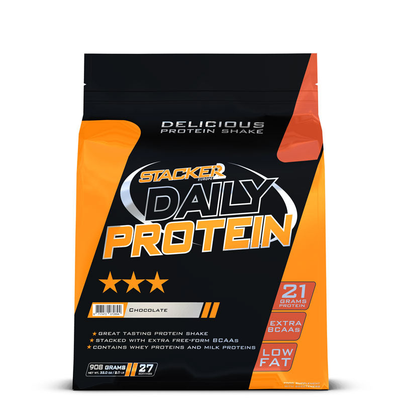 Stacker2 Europe's Daily Protein is een proteïneshake welke opgelost in water 21 gram aan eiwitten bevat per glas. Los je ons poeder op in magere melk dat nuttig je zelfs 28 gram eiwit! Daily Protein bestaat uit whey en melk-eiwitten, aangevuld met vrije aminozuren zoals extra BCAA’s.