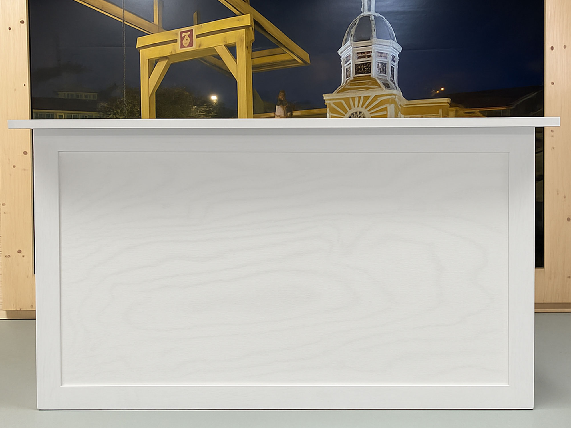Toonbank / Balie – Haarlem is een strak en functioneel meubel dat ideaal is als winkelbalie, receptiebalie of kassabalie. Met zijn tijdloze ontwerp en nette houtlook geeft deze witte balie / toonbank elke ruimte een professionele en gastvrije uitstraling.