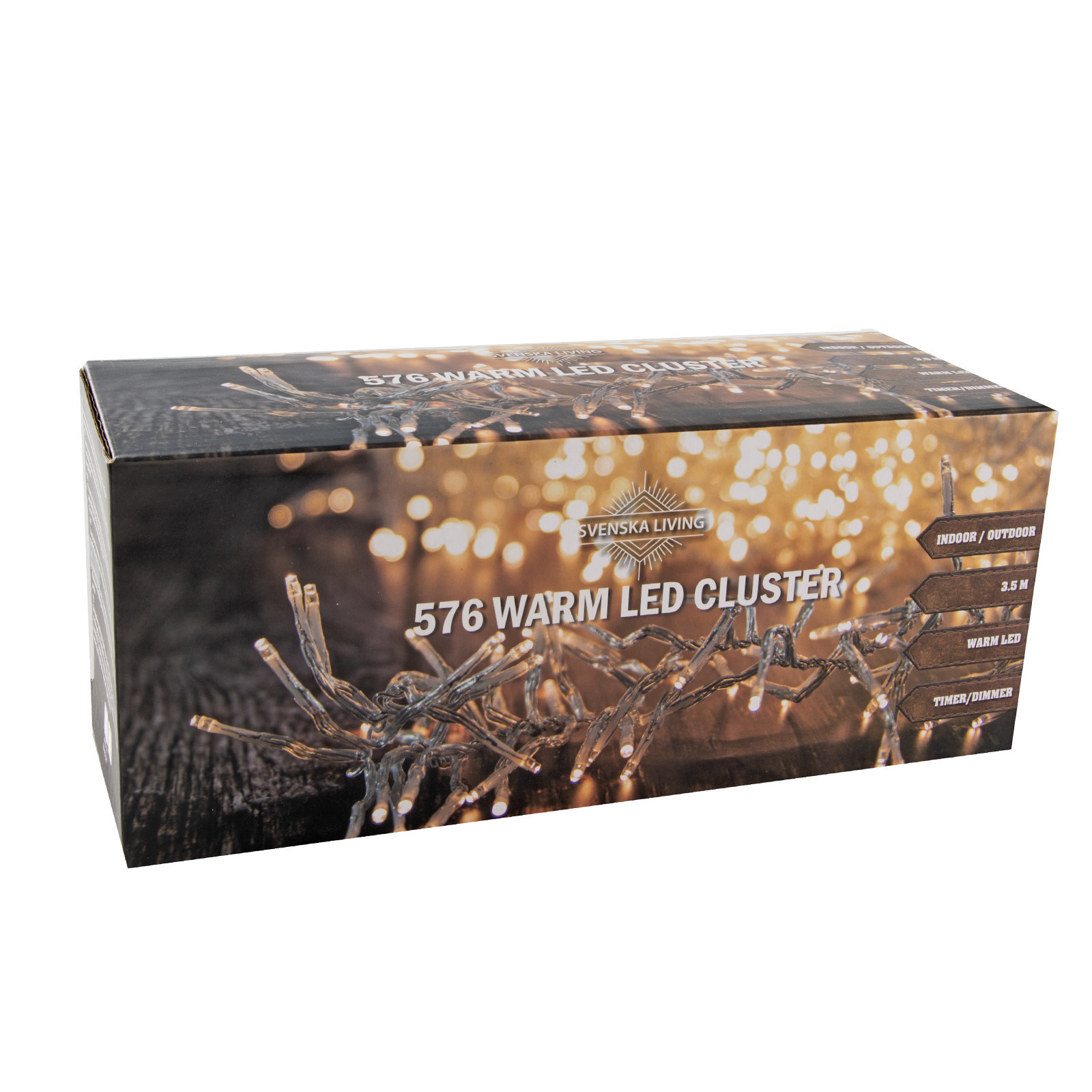 Clusterverlichting transparant snoer buiten 576 lampjes 350 cm inclusief timer en dimmer — Svenska Living