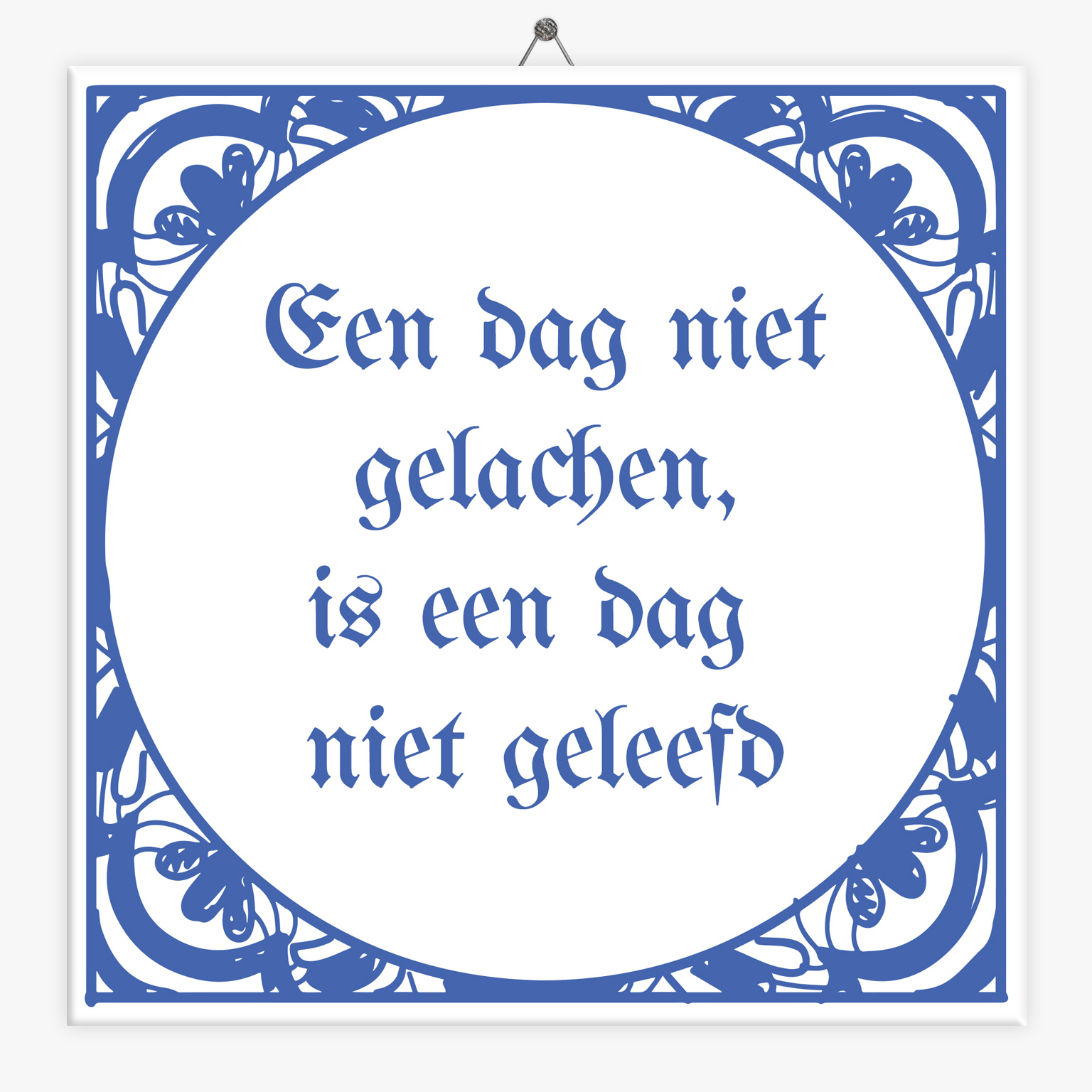 Ken jij een leuke spreuk waarbij je gelijk aan iemand moet denken? Zoals ‘Een dag niet gelachen, is een dag niet geleefd’. Dan is deze spreuk op een tegeltje een erg leuk en origineel cadeautje. Klik op ‘ontwerp tegeltje’ om alle mogelijkheden te bekijken voor het maken van dit tegeltje.