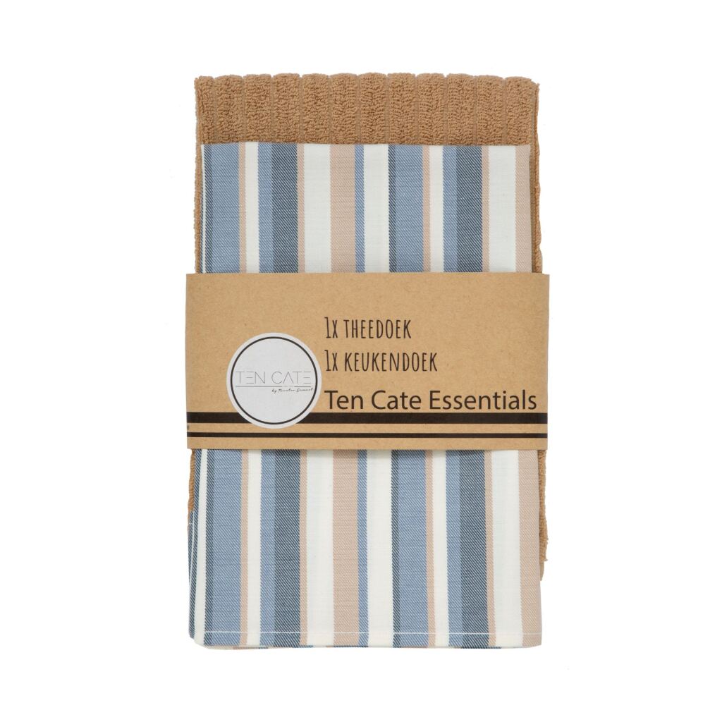 Ten Cate Theedoek en Keukendoek Streep Denim Blauw/Zand — Onlinehandelshuis.nl