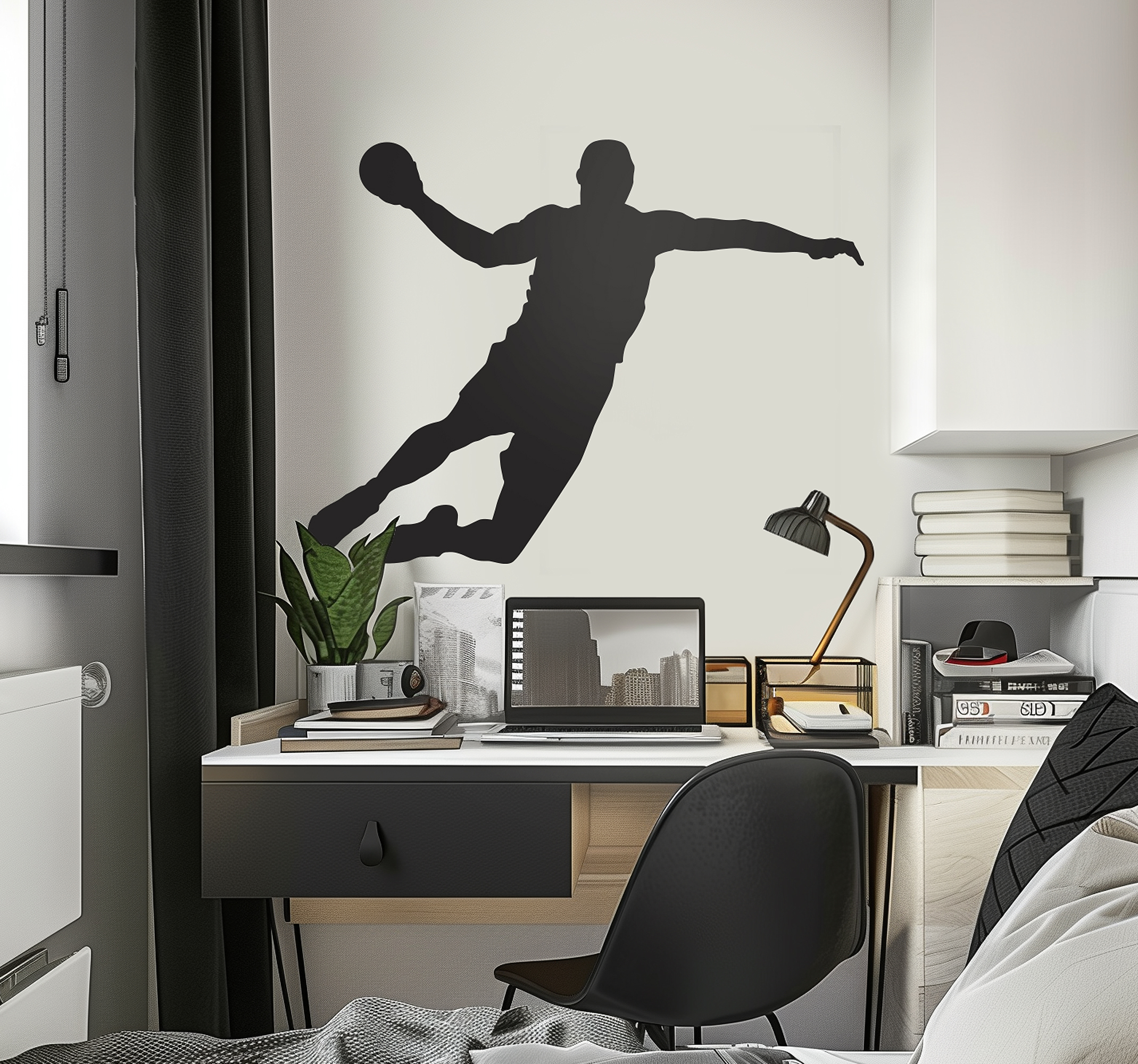 Een spectaculaire eenkleurige muursticker voor alle fans van handbal onder ons! Decoreer uw muren met deze leuke wandsticker van een handbalspeler in volle actie! Een mooie interieursticker!