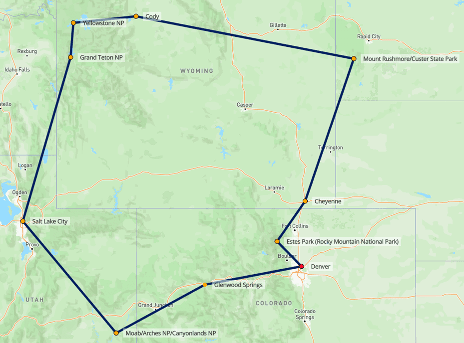 Ervaar de vrijheid van een camperreis door de indrukwekkende natuur van de Rocky Mountains en de grote nationale parken. Uw avontuur begint in Denver, waar u de camper ophaalt en de stad verlaat om de bergen in te trekken. In Rocky Mountain National Park ontdekt u de prachtige bergen, bossen en meren, en kunt u genieten van het uitzicht op de indrukwekkende bergtoppen.