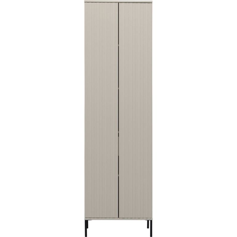Deze stijlvolle hoge kast van 60 cm breed, 210 cm hoog en 42 cm diep is een echte eyecatcher! Gemaakt van grenen, afgewerkt in de kleur dust en met trendy reliëfdeuren op zwarte metalen poten (15 cm), past hoge kast Gravure bij diverse woonstijlen. De twee deuren met handig push-to-open-systeem geven toegang tot vier legplanken en vijf vakken met in een daarvan een lade. Kom langs in de winkel om deze kast live te bewonderen of shop direct in deze webshop.