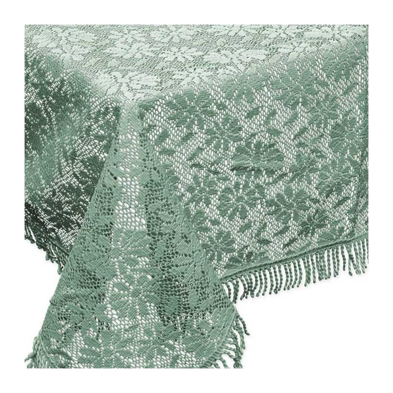 Binnen/buiten geschikt tafelkleed/tafellaken in de kleur groen met afmetingen van 140 x 180 cm, rechthoekig. Het rechthoekige tafelkleed heeft een voelbaar kanten patroon en heeft een anti-slip onderzijde, is kleur echt en weerbestendig. Materiaal: vinyl, stevige dikke kwaliteit. Tuintafelkleden. Wasvoorschrift: afnemen met een vochtige doek.