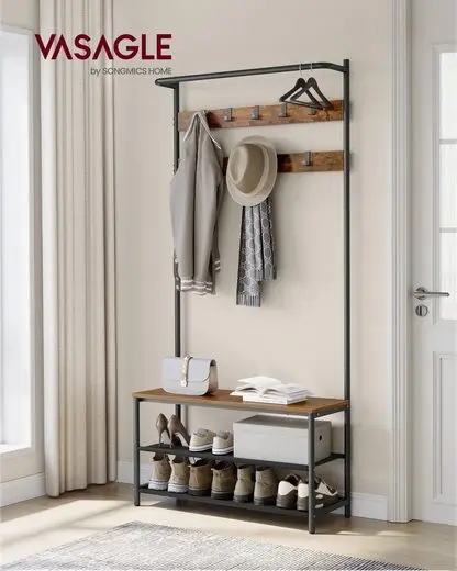 VASAGLE Vasagle Kapstok Kledingkast, Jurken Bar, Zitbank [#14cec1]