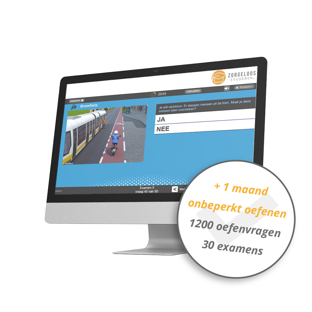 Bekijk product bij Zorgeloos-studeren.nl — bestel vandaag nog en ontvang de 1200 Scooter Theorie Oefenvragen met 30 Examens 2026 – 1 Maand Onbeperkt Oefenen snel thuis.
