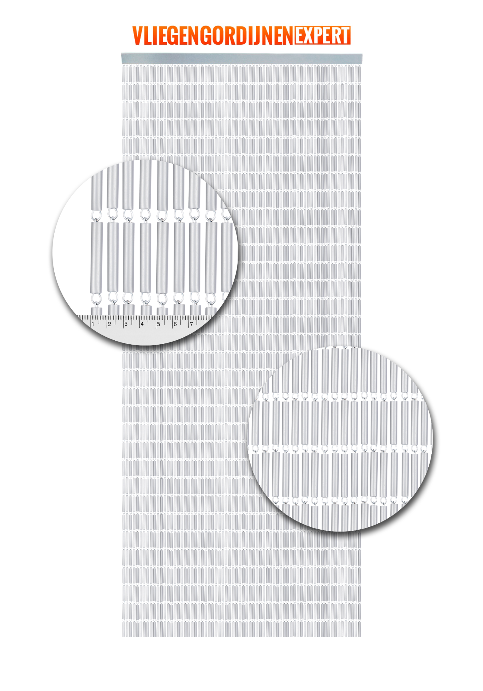 Wil je net iets meer speelsheid en dynamiek? Kies dan voor een wit vliegengordijn met verspringende banen. Dit subtiele patroon voegt een stijlvolle twist toe, terwijl de neutrale kleur het gordijn rustig en elegant houdt. Perfect voor wie functionaliteit en design wil combineren.