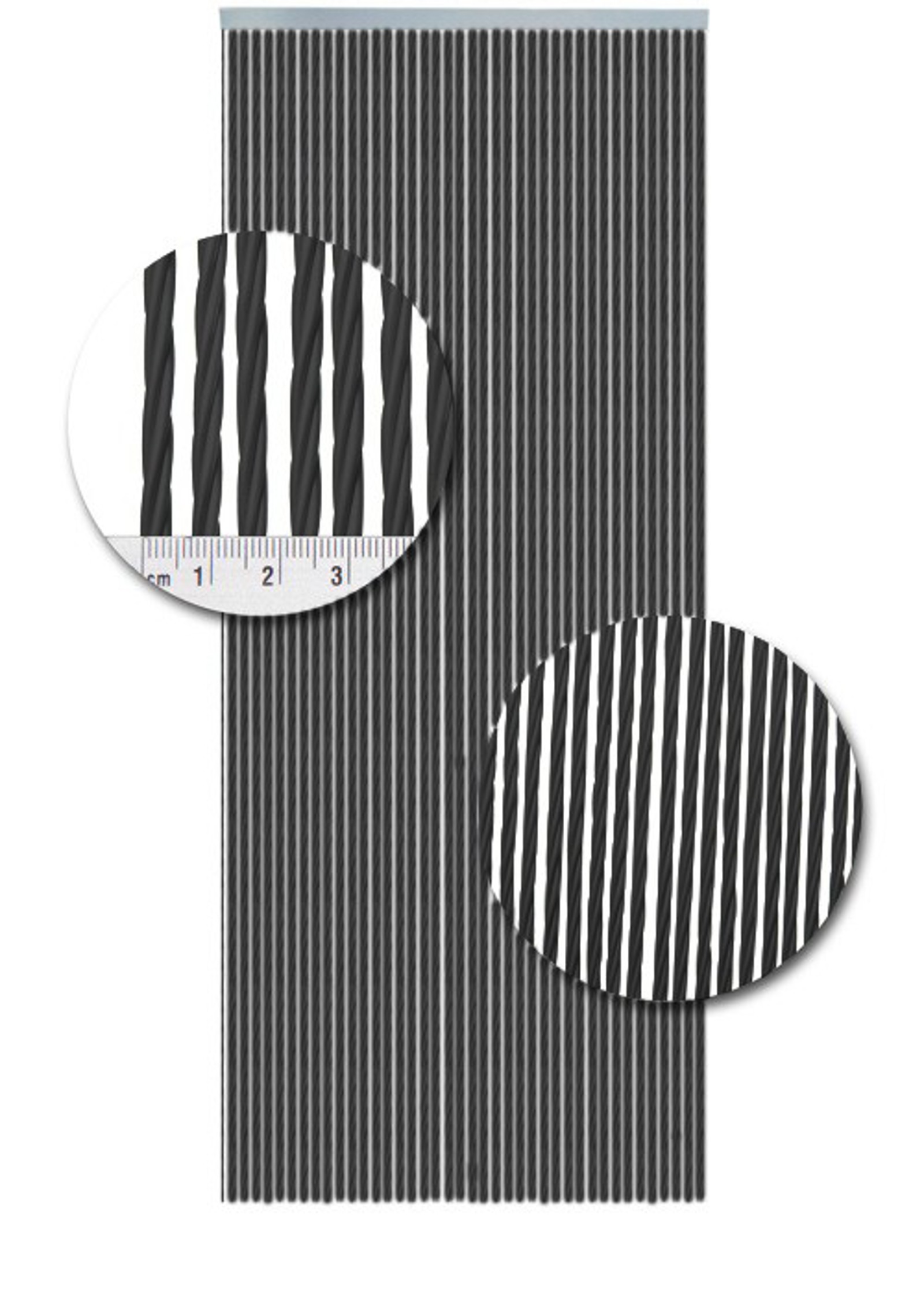 Napoli Zwart hangt, vanwege de zware kwaliteit en de speciale nabehandeling, zeer strak en recht in uw deurkozijn. Het gordijn telt 160 nauwsluitende kunststof draden per meter en wordt speciaal voor u op maat geassembleerd. De draden zijn vervaardigd uit PVC waardoor u geniet van een geluidloze doorloop. In de kern van het kunststof bevind zich een nylon draad, hierdoor zal het gordijn altijd goed op lengte blijven.