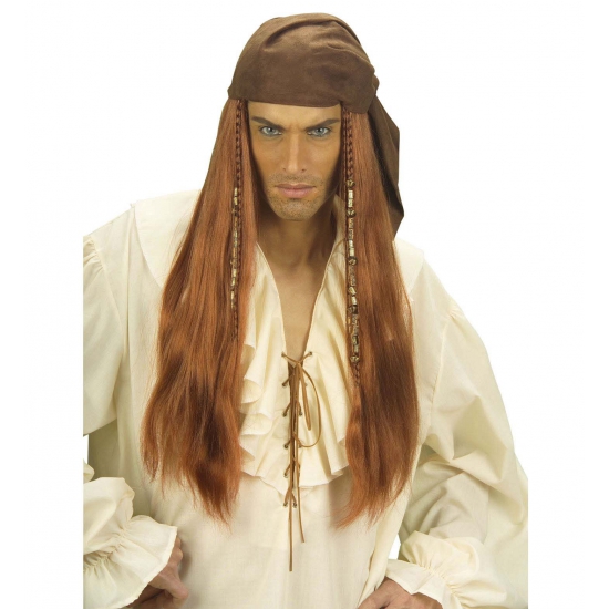 Caribische piraten pruik voor volwassenen. Deze Caribische piraten pruik wordt in een doosje geleverd. Mooie pruik voor een echte piraat. De pruik is rood-bruin van kleur en valt tot ver over de schouders. In de pruik zijn kraaltjes verwerkt voor een echte caribische look. Let op: dit is een verkleedaccessoire voor volwassenen, geen speelgoed.