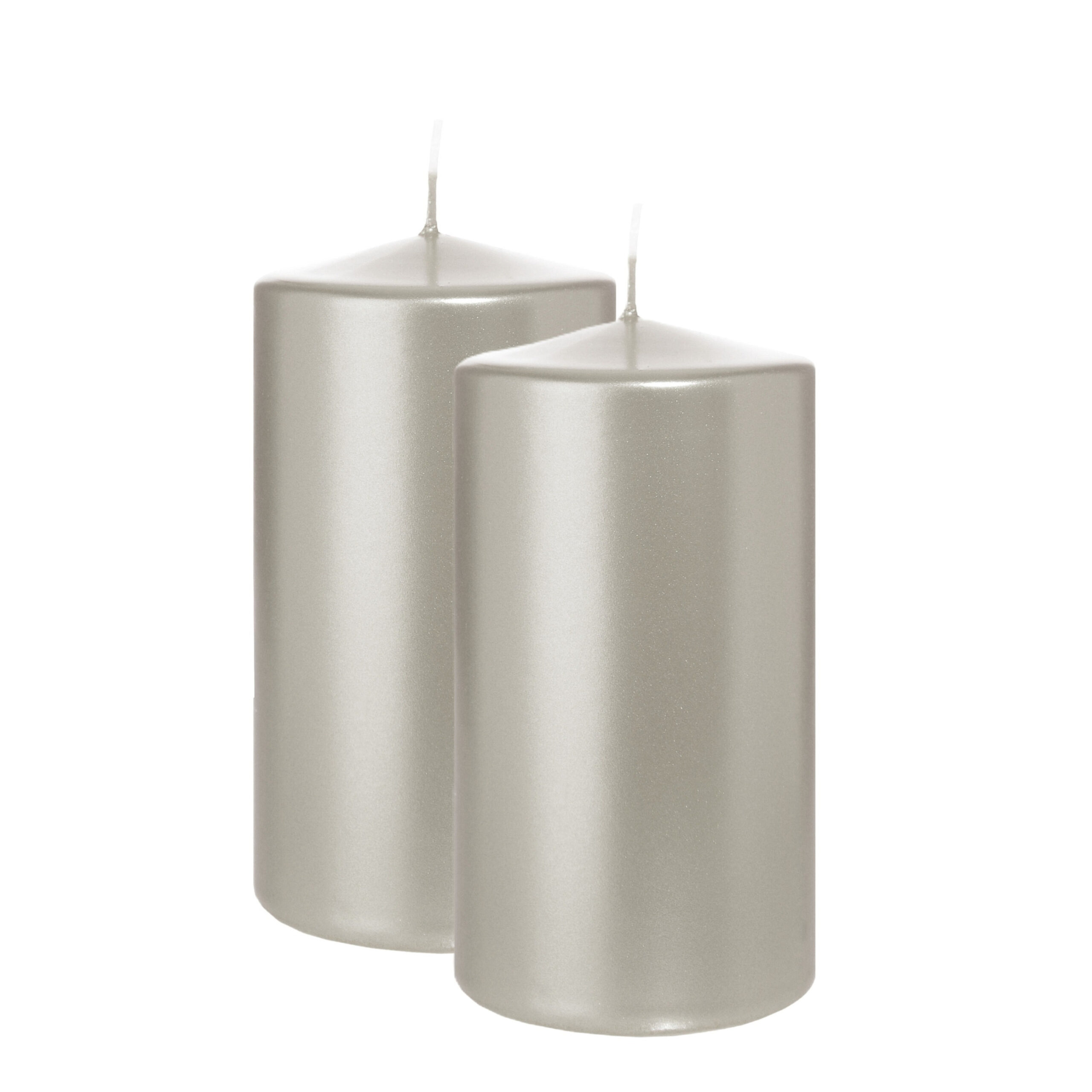 Cilinderkaars/stompkaars – 2x – metallic zilver – 13 x 7 cm – 52 branduren — Wiedemann