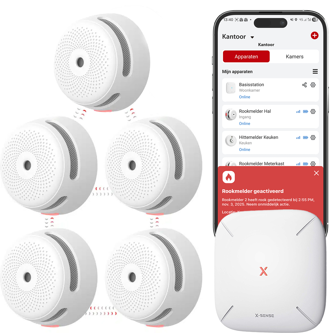 De ultieme Link+ Pro slimme veiligheidsbundel: 5 X-Sense XS01-M Rookmelders en SBS50 Base Station